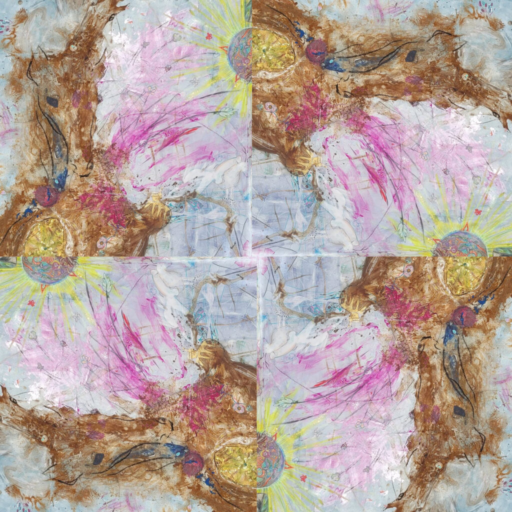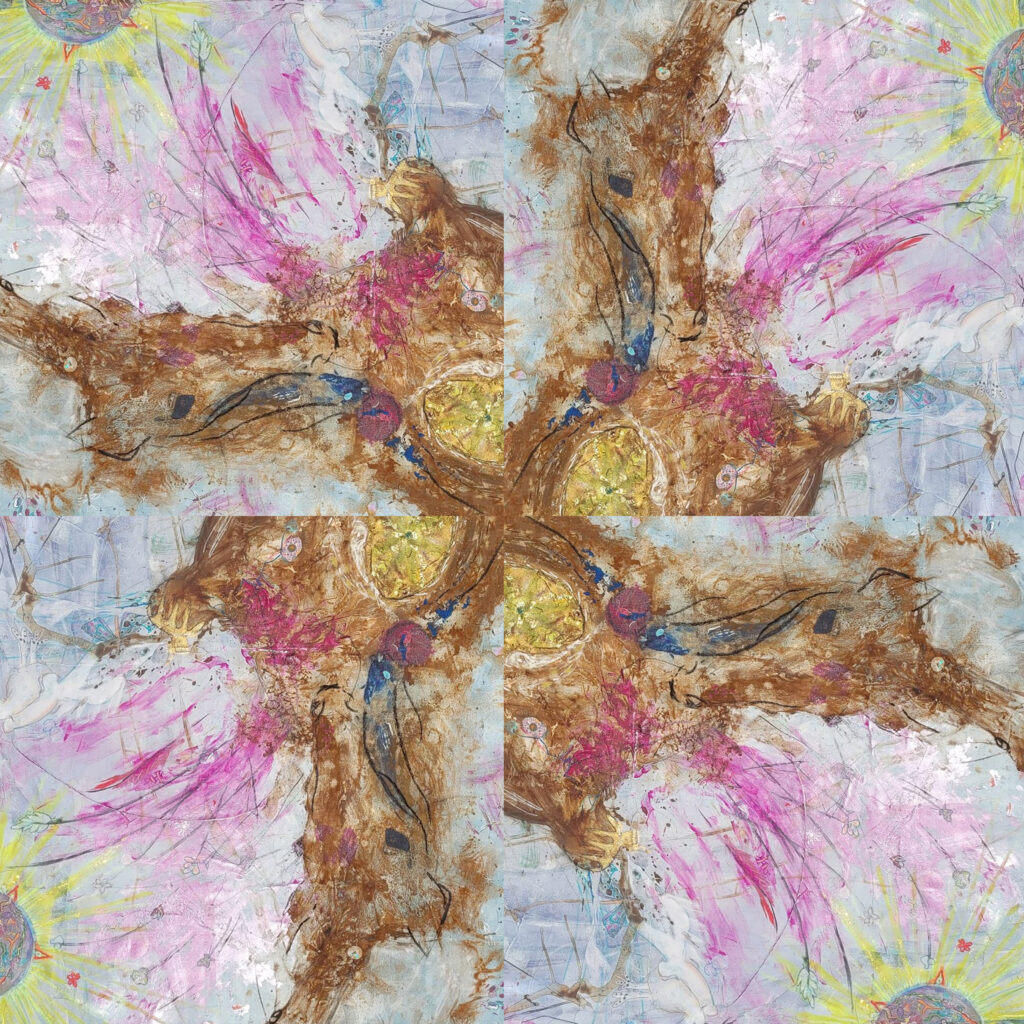 Ein Einhorn und seine himmlische Gepferde – Kaleidoskop Version – Feuerpferd